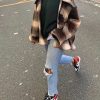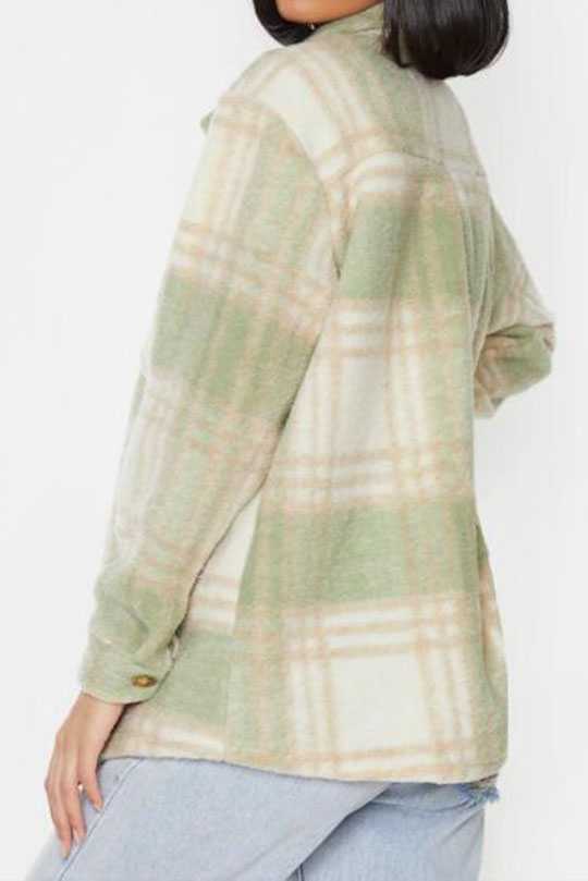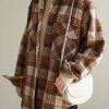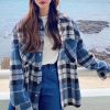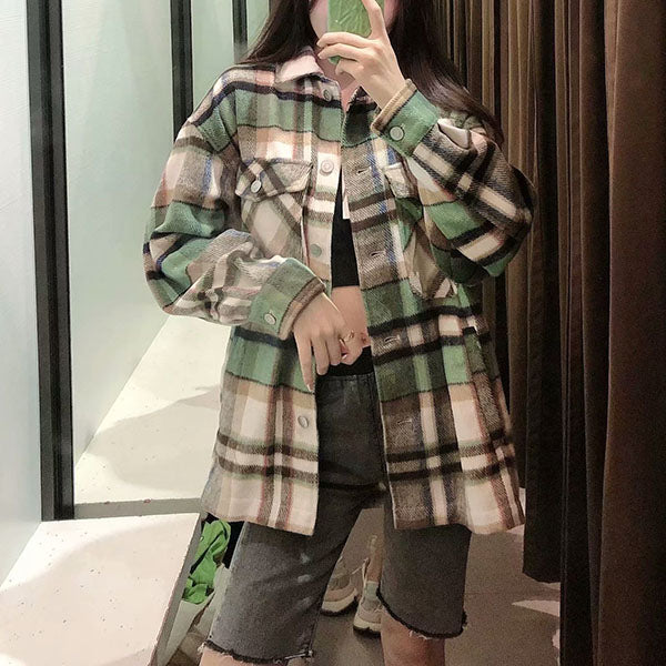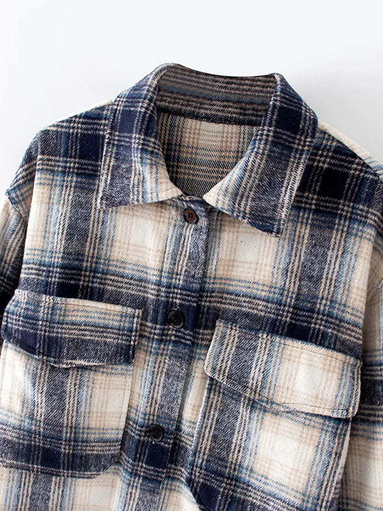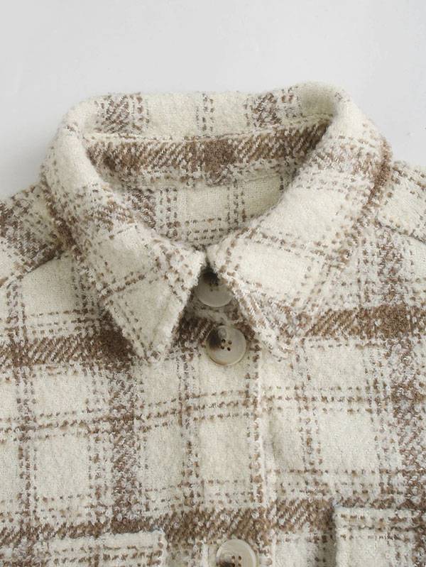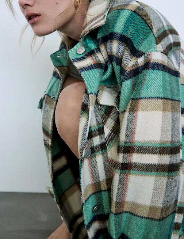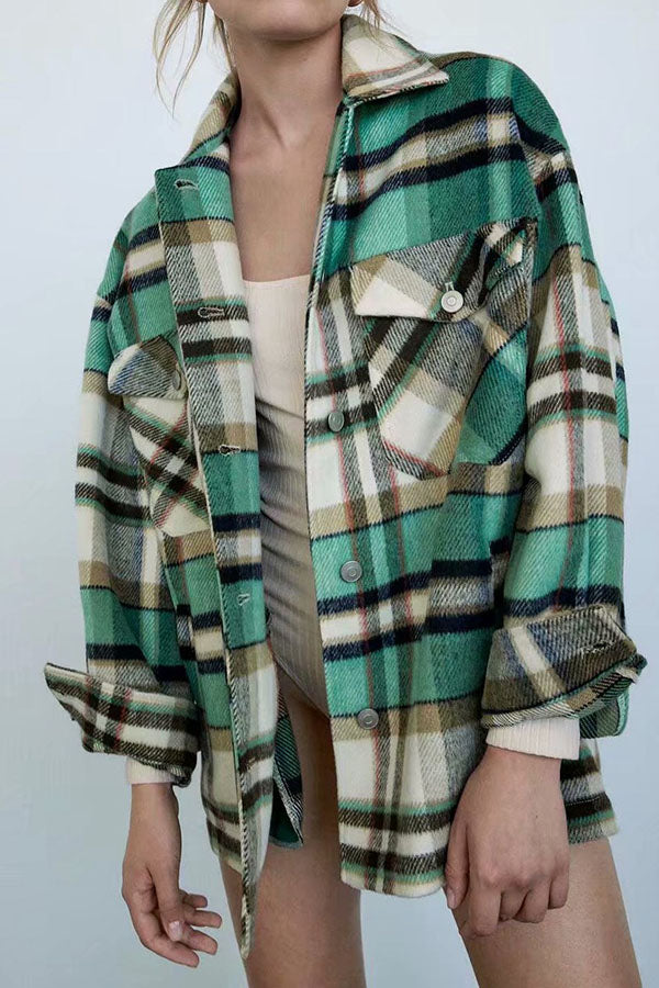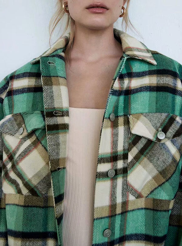 Classic Thick Colorblock Checked Button Down Shirt Jacket Woolen