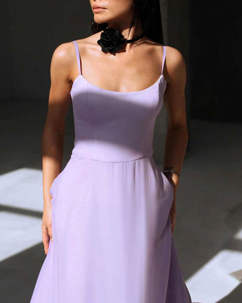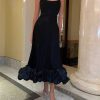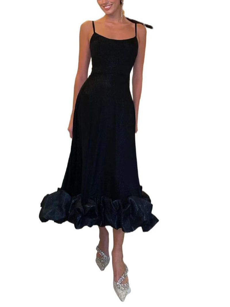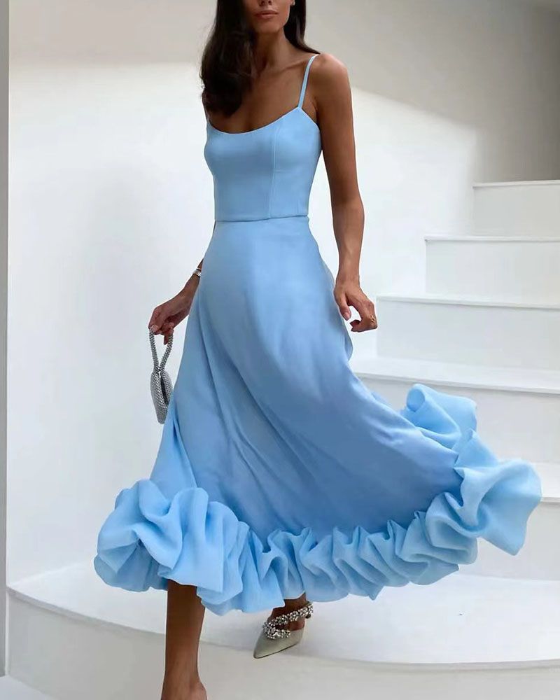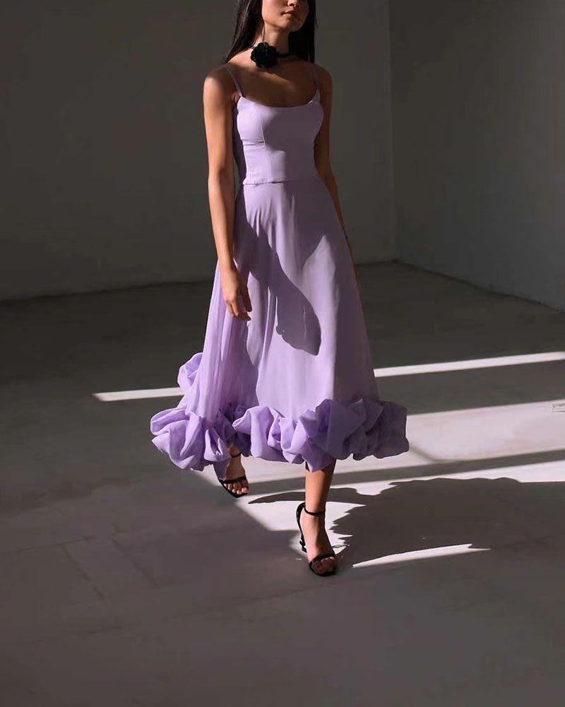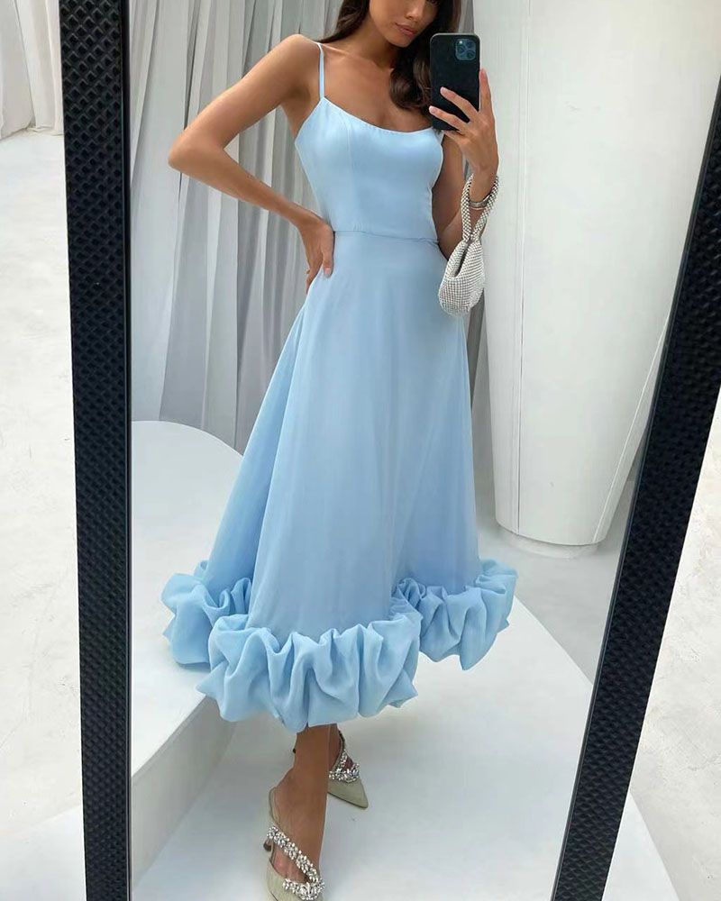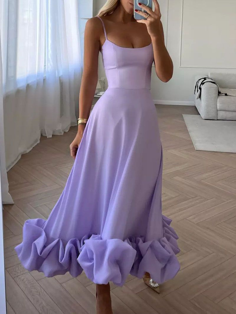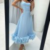 Formal Puff Hem Flowy Midi Dress For Graduation Guest Evening